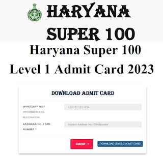 Haryanasuper100.com Level 1 Exam Admit Card 2023 Download Link HR Super 100 Scheme Call Letter 2023-